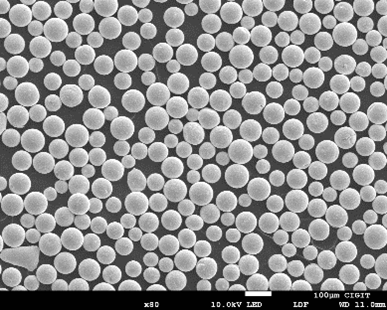 ①球形度:≥95%;②含氧量:≤200ppm;③D50:≤45;④流動(dòng)性:≤30s/50g;⑤松裝密度:≥40%;⑥空心球/衛(wèi)星球:無。